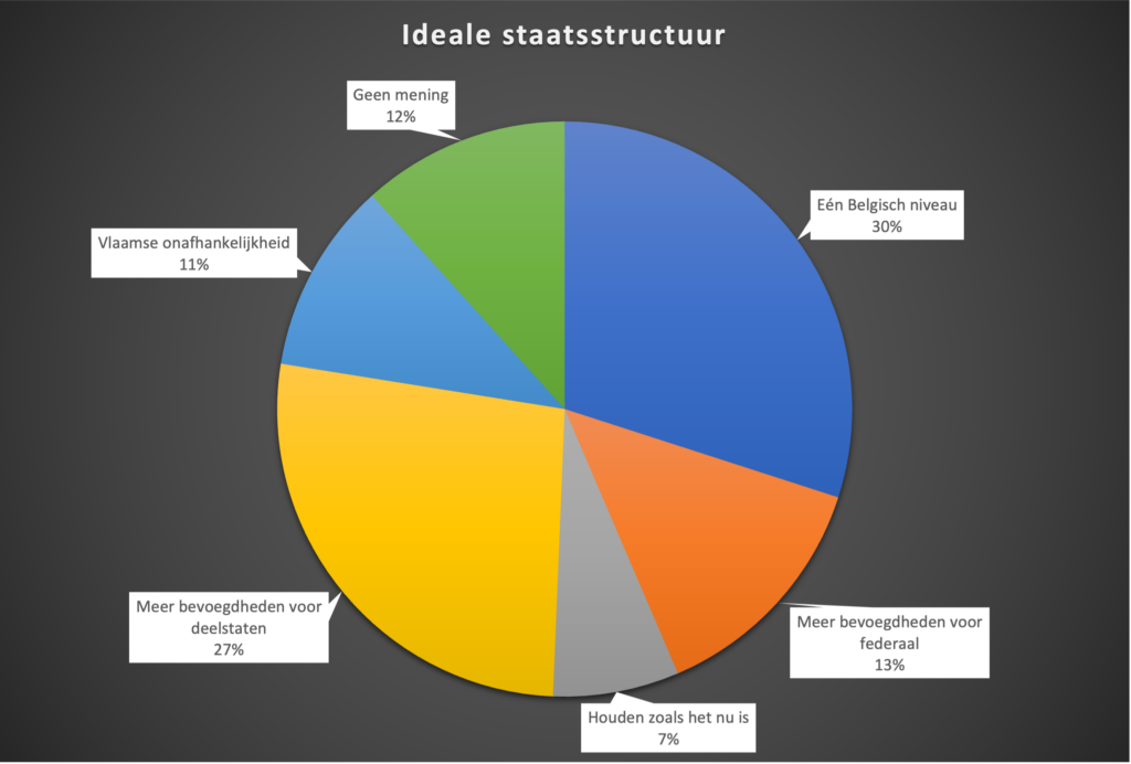 De gezondheidsbevoegdheden zitten enorm versnipperd. Het overgrote deel van de respondenten vindt daarom dat er iets moet veranderen. 43,6 procent vindt dat de gezondheidsbevoegdheden meer op Belgisch niveau moeten liggen. 37,6 procent is voor meer Vlaamse bevoegdheden.
