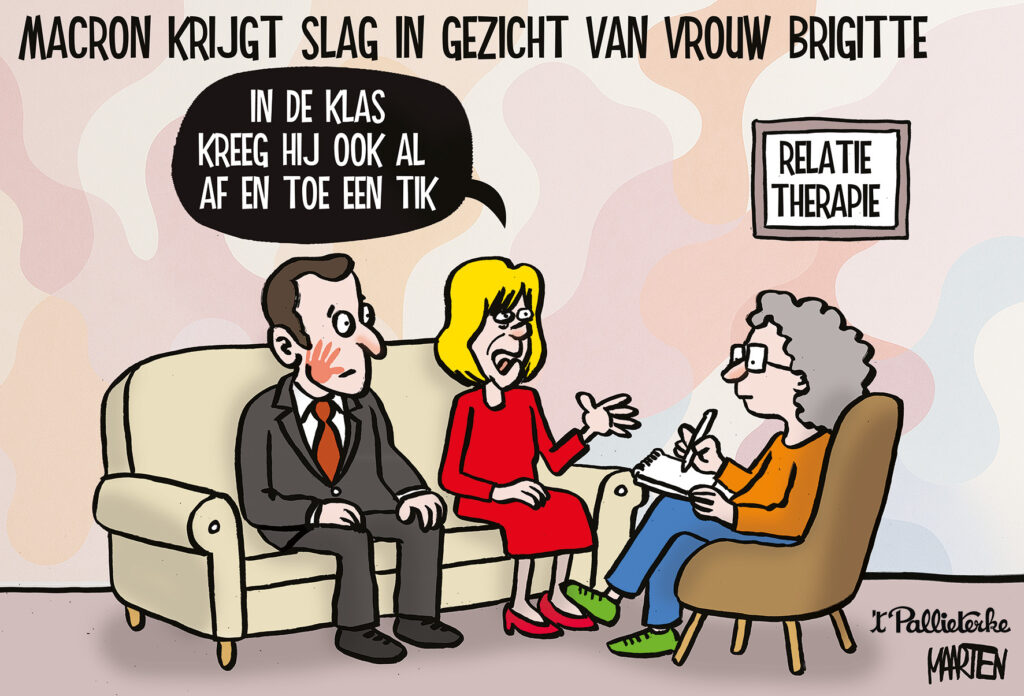 Macron krijgt slag in gezicht van vrouw Brigitte